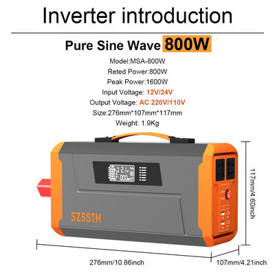 800W Pure Sine Wave Inverter Outdoor Portable DC to AC Power Inverter with Output Current of 9.09A 110V /4.54A 220V OEM